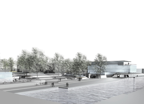 Die Perspektive zeigt die geplante Neugestaltung des zentralen Platzes in Leichlingen. Sie ist Bestandteil des Diplom-Entwurfes.