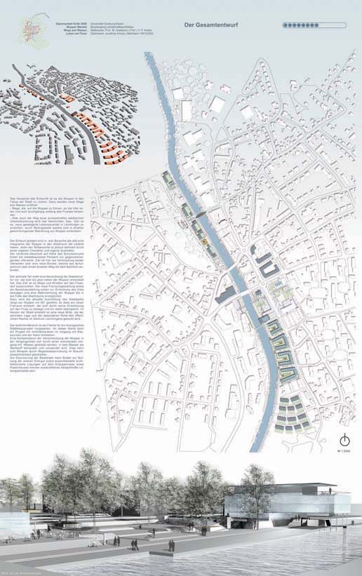Der zentrale Teil sieht eine Neuausrichtung der Stadtstruktur vor, die sich bis jetzt neben der Wupper entwickelt hat. Das Ziel ist es Wege und Straßen auf den Flusslauf zuzuführen. Die neue Freiraumgestaltung sowie die Baukörperstellung sollen zur Erreichung des Ziels beitragen und eine Wahrnehmung der Wupper bis in die Tiefe des Stadtraums ermöglichen.